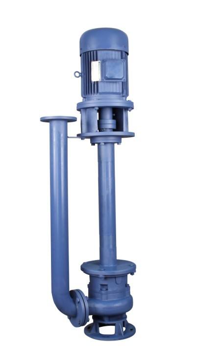 YW型泵为单级单吸,液下式离心泵,用联接管连接泵的水力部件和轴承体及支承盘,液体由出水管部件排出,叶轮为半开式叶轮,并在叶轮叶片进口延伸处设有搅拌叶片,可输送含有颗粒的介质。该泵的长液下深度为8m,当液下长度超过1.5m时,就要采用接轴结构,并在接轴处的附近装有滚动轴承(油脂润滑),采用联轴套连接。泵下面的滚动轴承用机械密封与液面隔离,不接触液体。泵轴承有足够的刚度,可以保证泵平衡运行,如果在深进中运行,可以加置一条吸入管 (合同中注明)。
